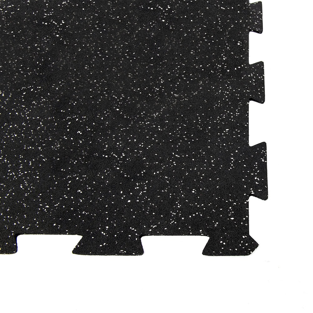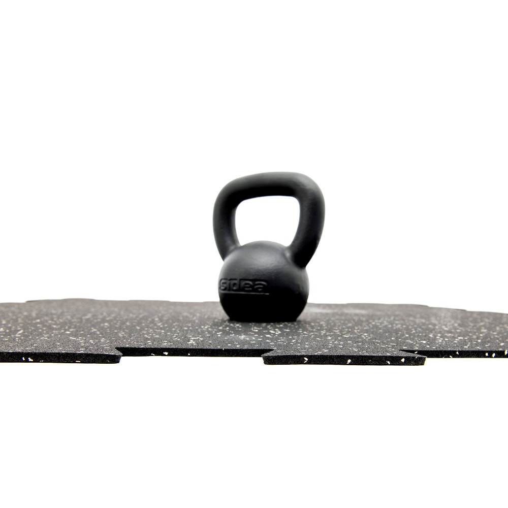 The 5 mm 9201P5 version, the thinnest in the range, is specifically designed for applications where high shock absorption is not required but a stable, non-slip, and wear-resistant surface is desired. The reduced thickness means less material usage, resulting in direct economic benefits while preserving essential durability and surface performance.Designed for use in areas dedicated to functional training and weight training, the 9201P5 EcoGym 5 mm is suitable for all environments where structural load-bearing capacity and wheeled equipment traffic are not required. Although it offers a limited degree of shock absorption, it effectively protects the underlying floor from scratches and cuts caused by the placement of equipment. The white speckled pattern contributes to a more refined aesthetic, making the surface less prone to visible footprints, dust, and marks—common issues with uniform black recycled rubber flooring.From a dimensional and functional standpoint, recycled rubber is sensitive to temperature variations, which may cause expansion and contraction phenomena, potentially resulting in gaps or separation between tiles. To counter these issues, the 9201P5 model features a puzzle-style interlocking system—a technical solution that minimizes gaps caused by thermal deformation and prevents tile displacement due to user movement, especially in “island” installations not fixed along perimeter walls.Please note that the 9201P5 EcoGym 5 mm is not suitable for wheeled traffic: the passage of wheels (e.g. benches, carts, or mobile equipment) may cause permanent warping or localized damage. Therefore, use is not recommended in high-traffic weight rooms or in settings with intensive, uncontrolled use of wheeled equipment.