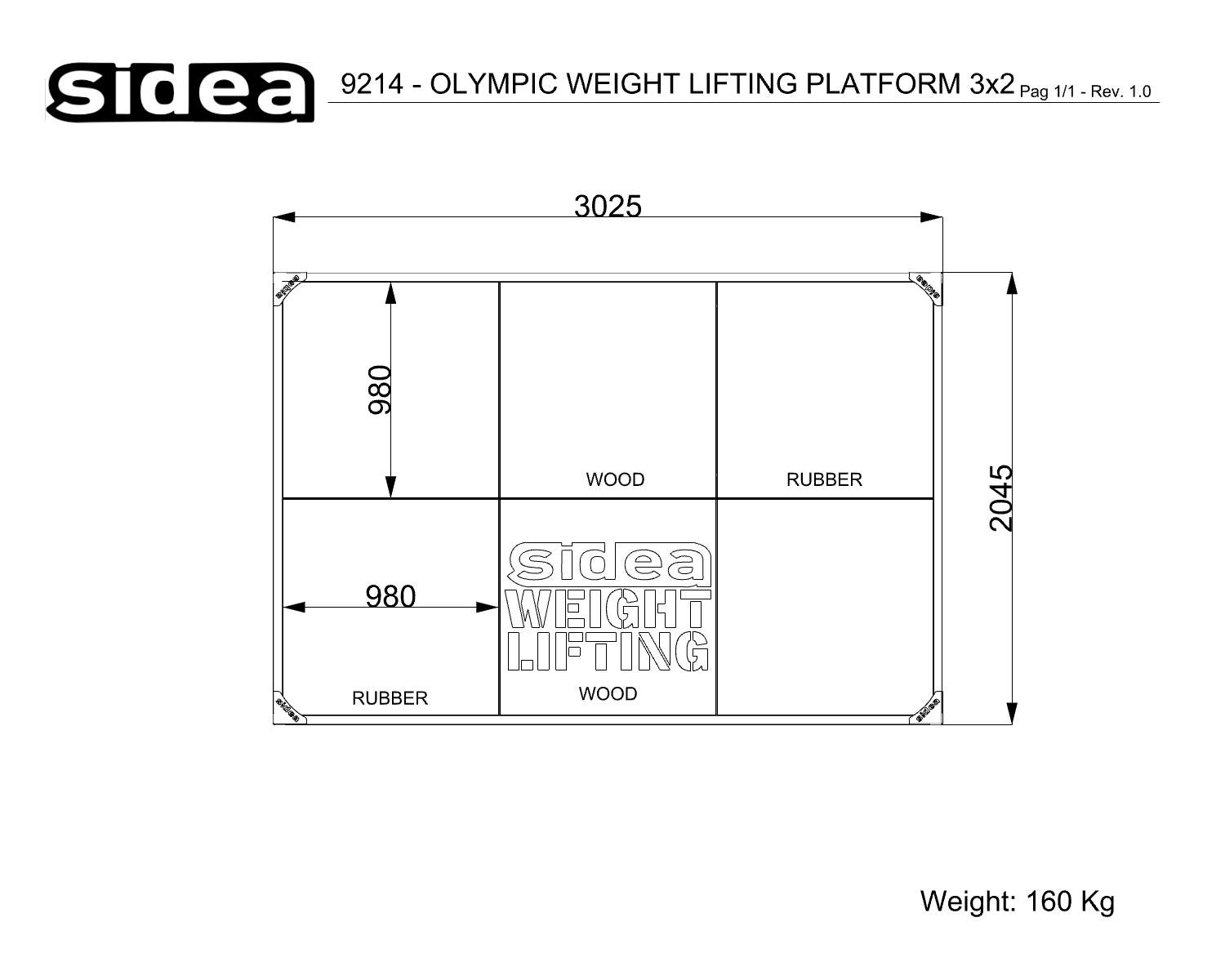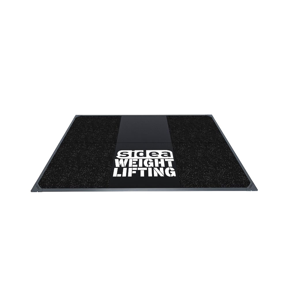The Olympic Competition Warm-Up Platform code 9214, provided with “Sidea Weightlifting” graphic (customizable on request), can be defined as the compact (3×2 m) and economical (20 mm rubber, with no polyurethane layer) version of the Olympic Competition Platform code 9213.