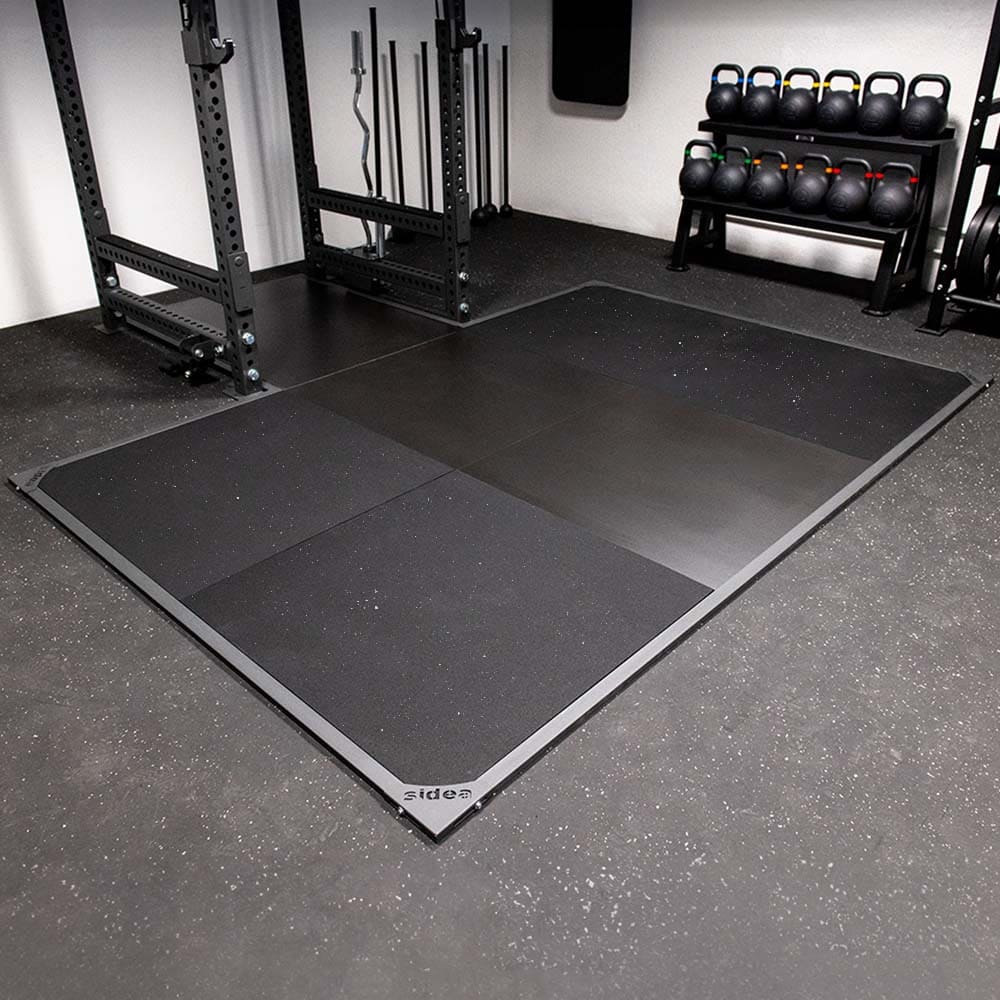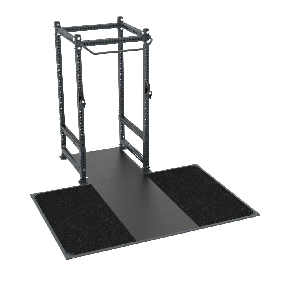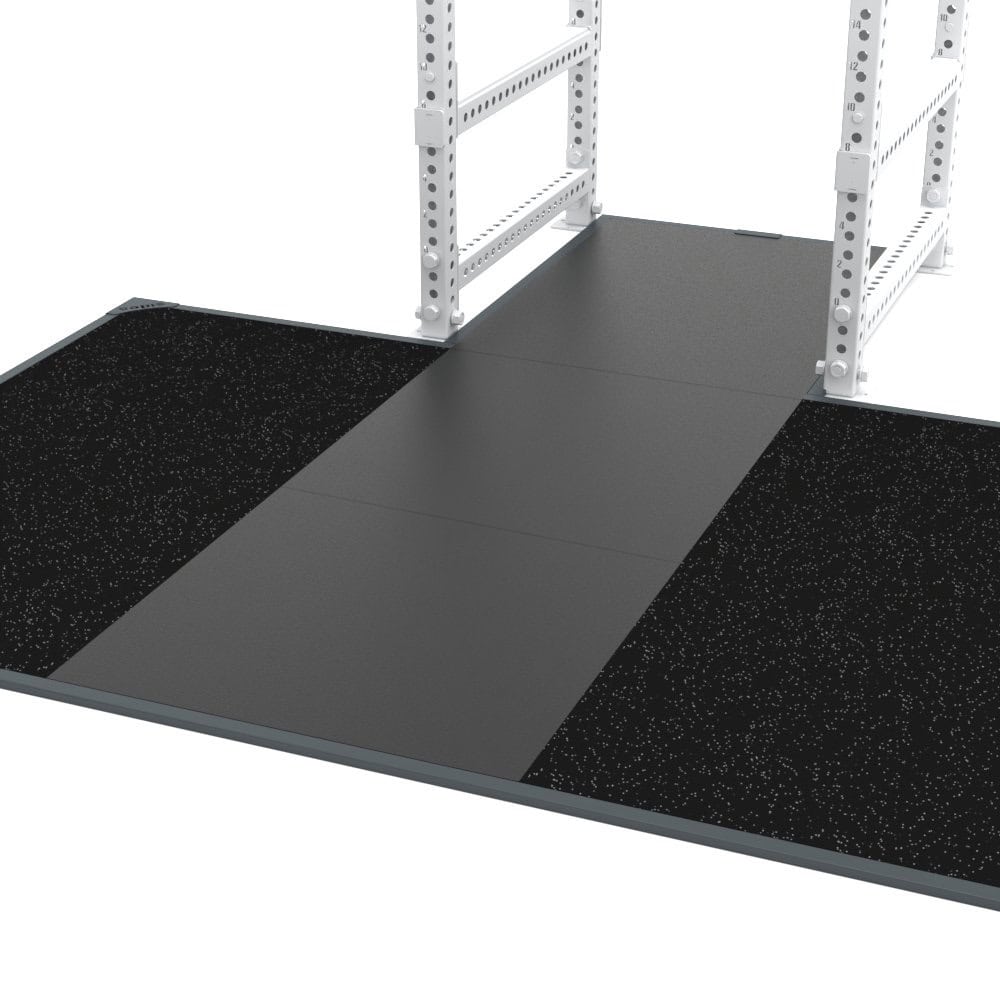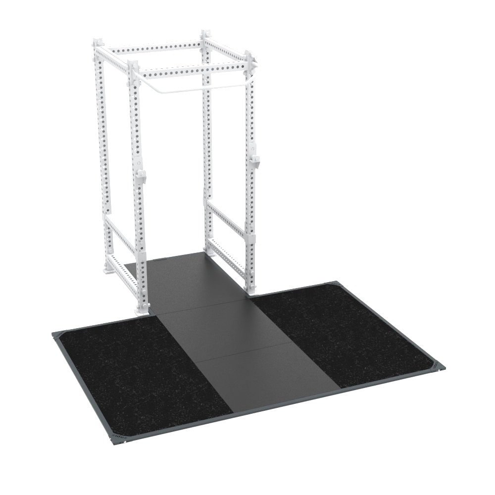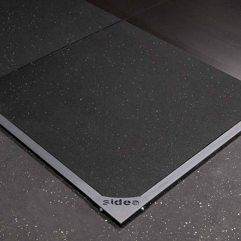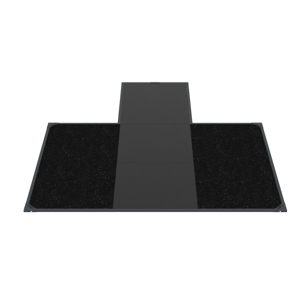 WL-PL Platform for 9300 – The Weightlifting Platform, code 9217, is designed to be integrated into the High Performance Cage Rack, code 9300M0. It features four side panels made of high-resistance agglomerated rubber tiles (cut- and puncture-resistant), 20 mm thick. These are dual-layer tiles: the upper layer (10 mm) is made of fine granules (smooth, compact surface, less prone to crumbling and collecting dirt), while the lower layer (10 mm) consists of coarse granules (better shock absorption).