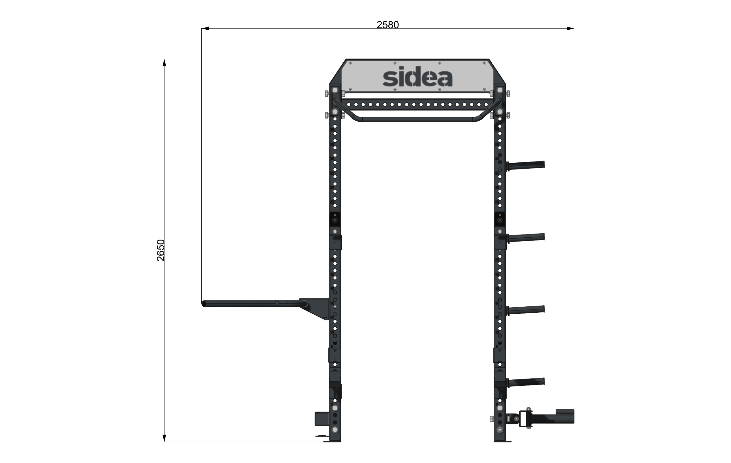 The rotating barbell supports (High Performance Roller J Hook Pro Cod. 9095/53), can be placed outside or inside the rack uprights.