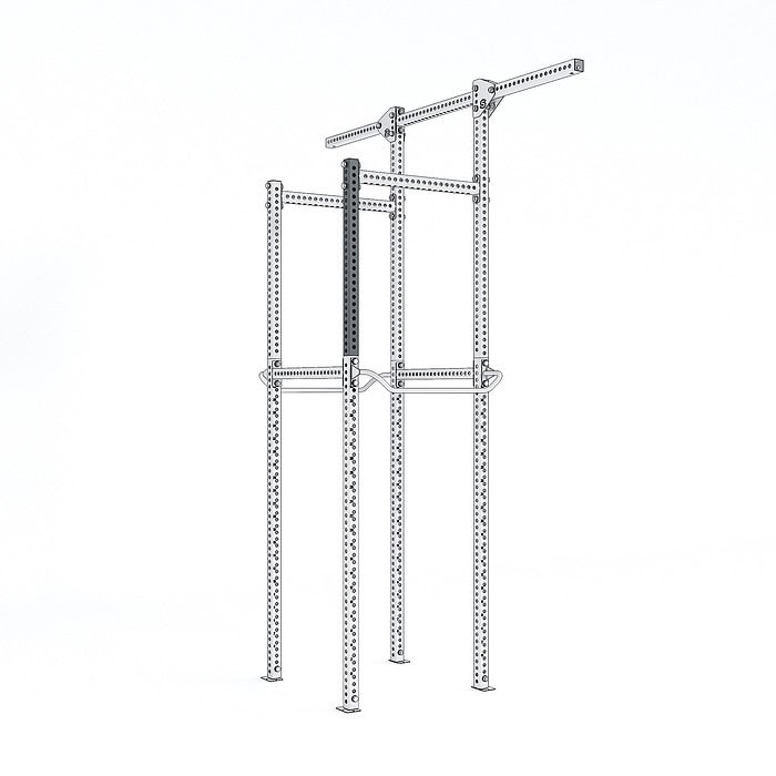 support that can increase the height of the structure by allowing, in combination with the 9306 H.P. 1860 mm Beam, 9309 H.P. High Adjustment, 9322 H.P. Suspension Beam and the 9323 H.P. Suspension Beam Plate, the use of Climbing Rings and Ropes (cod. 1204-1206).