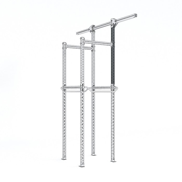support that can increase the height of the structure by allowing, in combination with the 9306 H.P. 1860 mm Beam, 9308 H.P. Low Adjustment, 9322 H.P. Suspension Beam and the 9323 H.P. Suspension Beam Plate, the use of Climbing Rings and Ropes (cod. 1204-1206).
