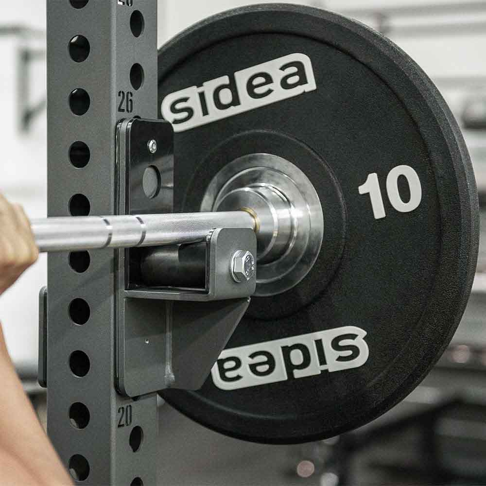This pair of barbell supports is characterized by a polyethylene roller designed to provide an easy centering for the barbell placed on the rack.