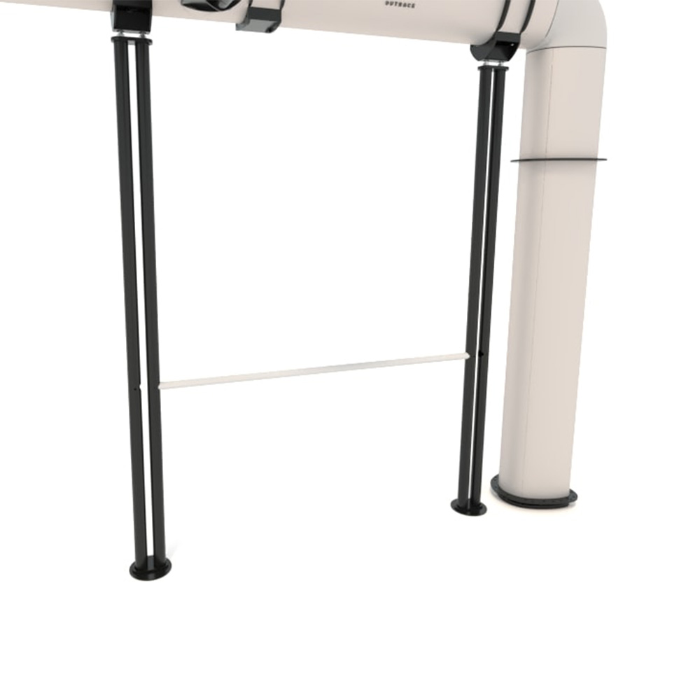 The LOW HORIZONTAL BAR is a fixed frame, which is a great addition for OUTRACE OUTDOOR structures. It is composed of a single horizontal metal bar positioned between two OUTRACE upright pillars at the height of 90 cm. It can be used for stretching but also pull-up, push-up, and reverse sit-up exercises, or together with elastics or other accessories—ideal for strengthening shoulders and biceps.
