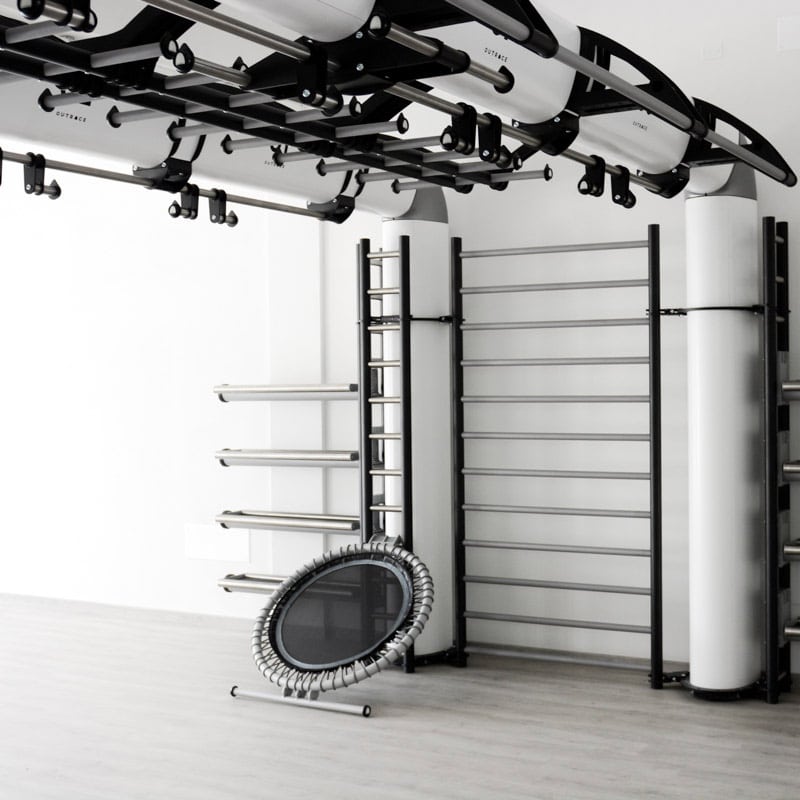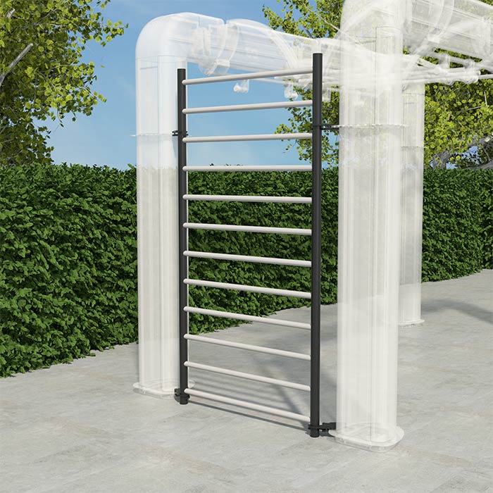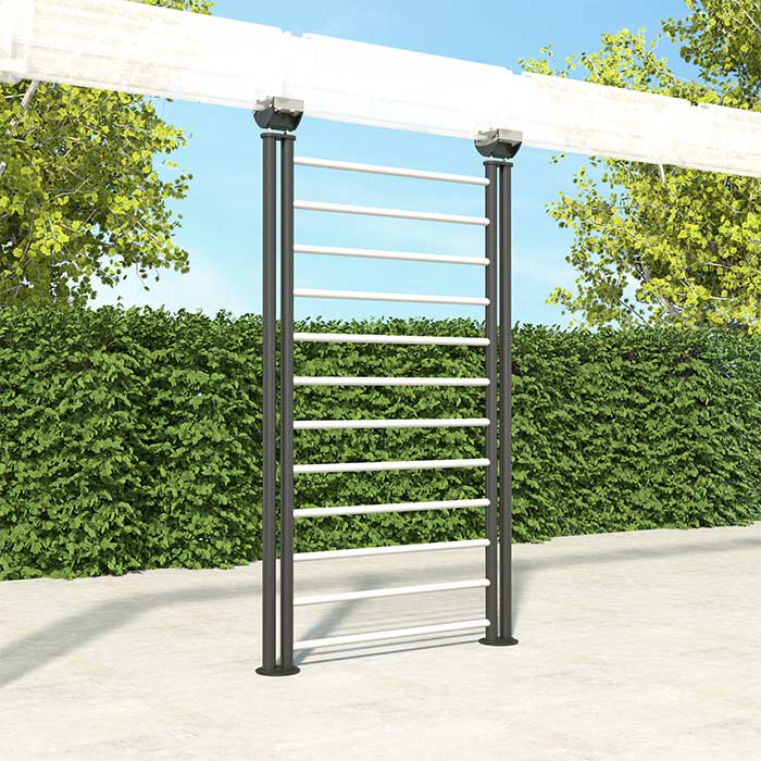 The Gym Ladder is a solid stainless steel wall bar. It is available in two versions, depending on the frame on which it has to be installed.