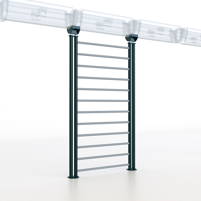 Designed to be placed between two lateral columns (as for example on an R2, R3 or R4 OUTRACE structure), the Gym Ladder Mid is one of the main Components of the OUTRACE core Structure. The GYM LADDER DOOR, which could meet different customizable needs, can be installed under the frontal beams (such as in case of W, T or H structures).