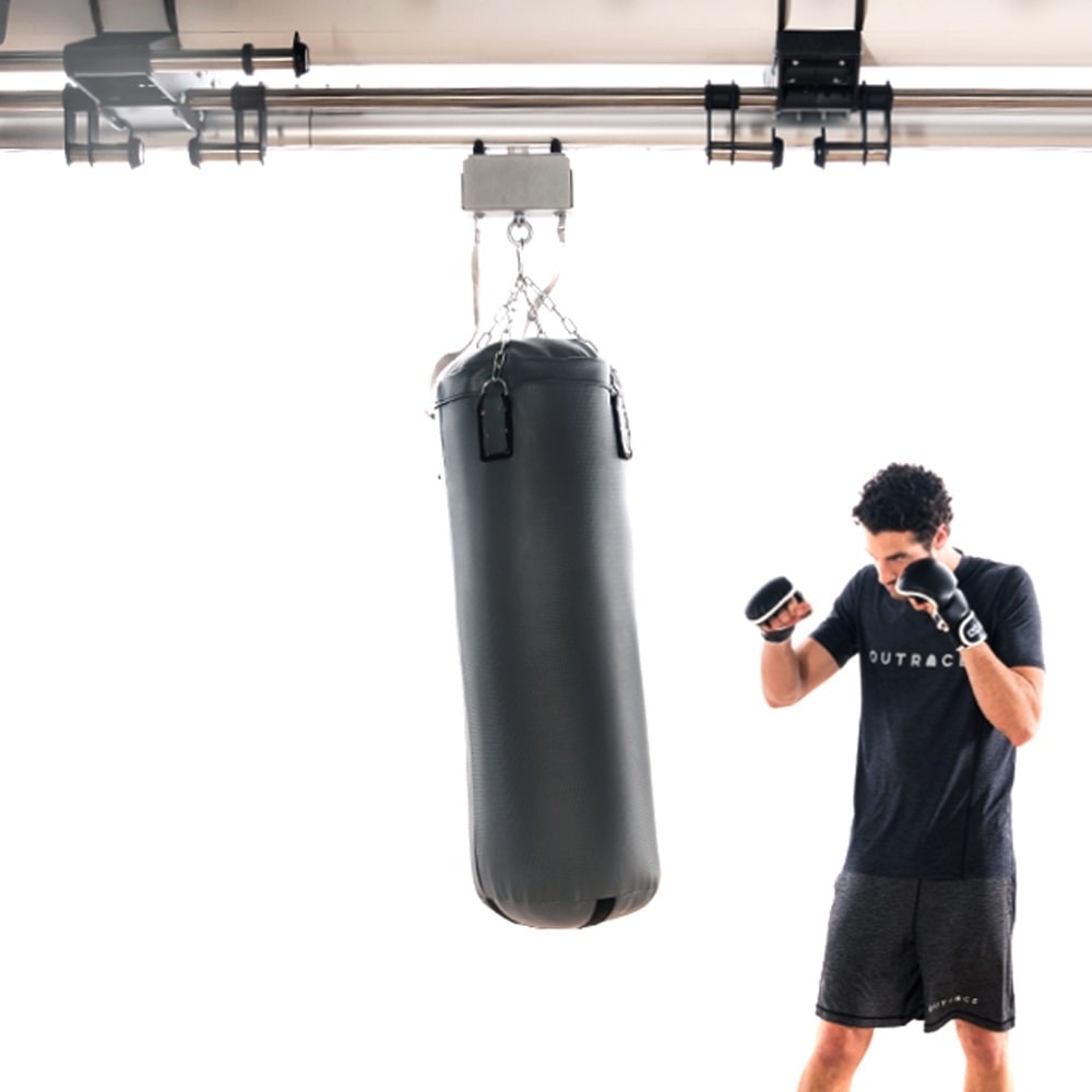 Is the state of the art boxing bags sliding system. This system allows operators to quickly hook or disengage the Punching Bag from the Outrace structure. It allows a secure lock of the Punching Bag in the desired position when working out. The Punching Bag can be easily snapped out and shelved in dedicated storage areas when not in use.