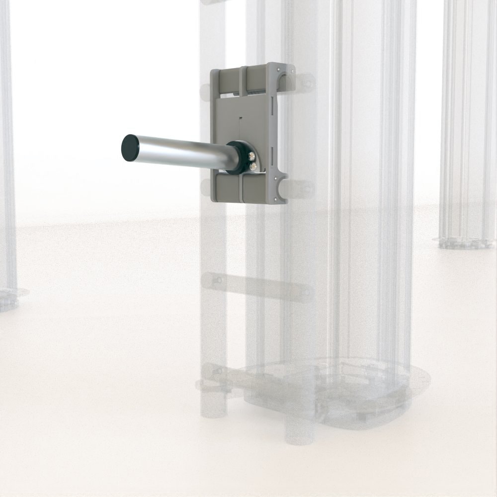 The Outrace Plate Holder is a sturdy plate and bumper holder, made of powder-coated steel with a diameter of 48mm and a support length of 250mm, for attachment to the Tiny Gym Ladder.