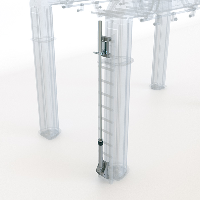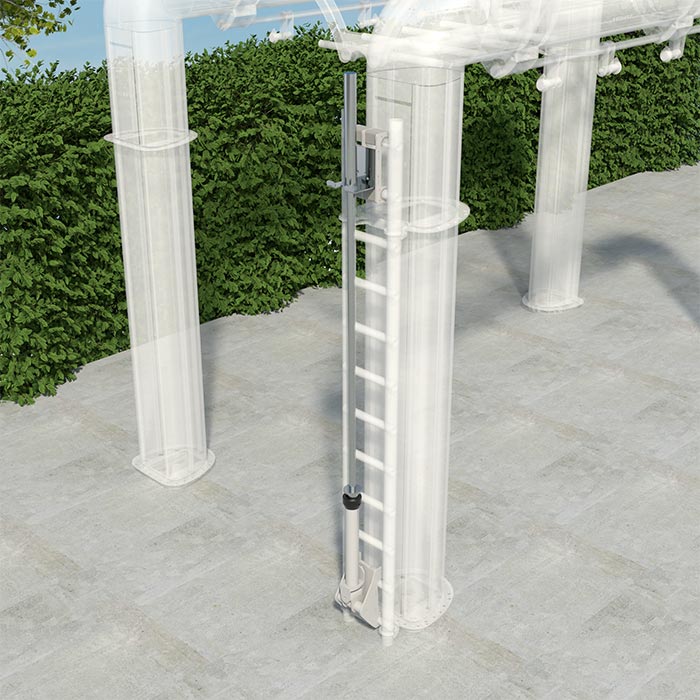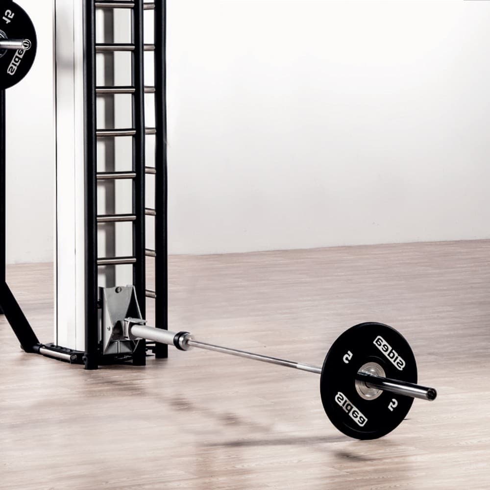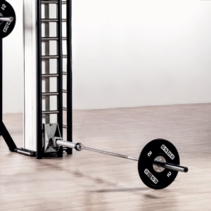 The Barbell Lever is made up of a tube which accomodates the lower end of the Olympic Bar and an upper storing clip on the TGL to safely lock the barbell in the vertical position when not in use.