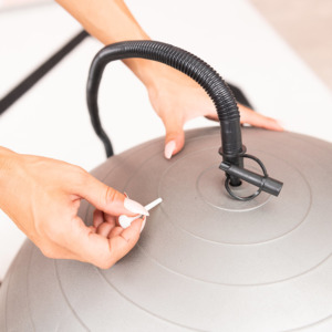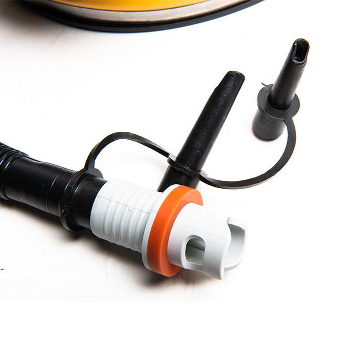 Foot pump for FlowBag (Code 8054) and Flyo (Code OR16046), suitable also for Gym balls and other multi-purpose gymnastics balls without a rubber valve. The pump comes with a flexible extension tube of 110 cm and three terminals: two plastic adapters for balls complete with a cap and a connection for a nautical valve for FlowBag and FlowBall.