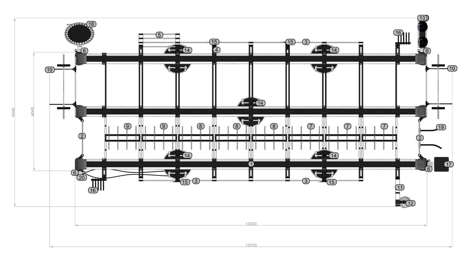 Structure dimensions (Full Optional): 1372 x 644 x h306 cm