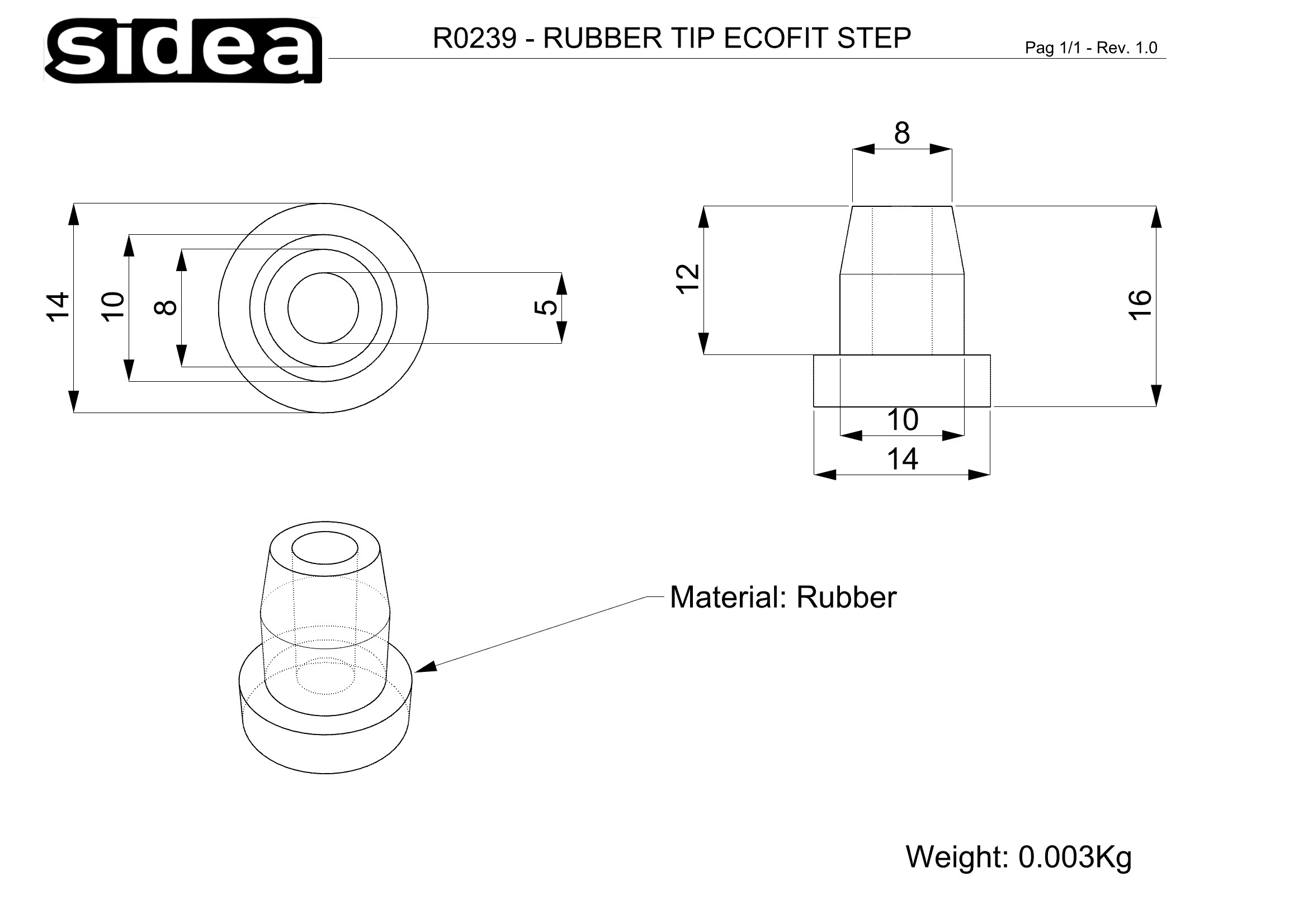 Rubber tip used in the bases of Ecofit Step (code 0239). It’s manufactured with a soft rubber material which makes it anti-slippery. A useful spare part to keep the Step’s adherence to the floor when the old tips wear off with time and stress.